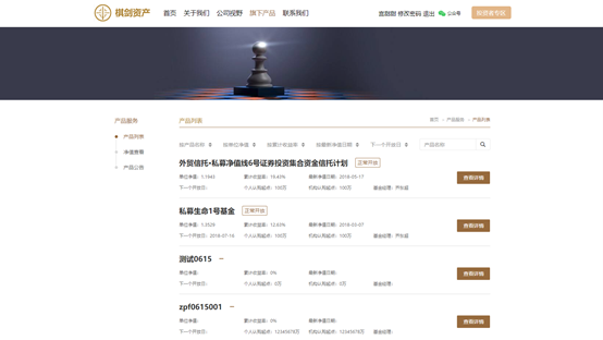 • 關(guān)于我們:包括公司簡(jiǎn)介、棋劍文化、投資理念、投研團(tuán)隊(duì)、招賢納士五個(gè)功能版塊。
